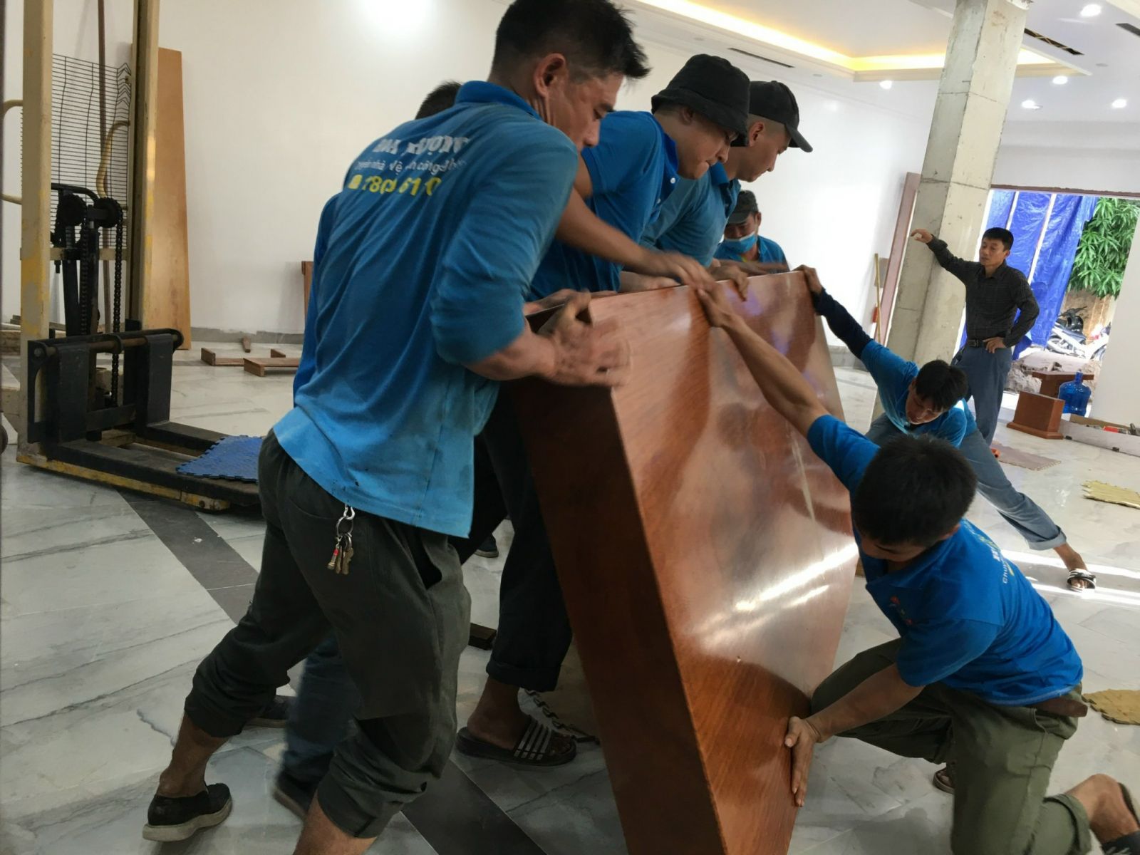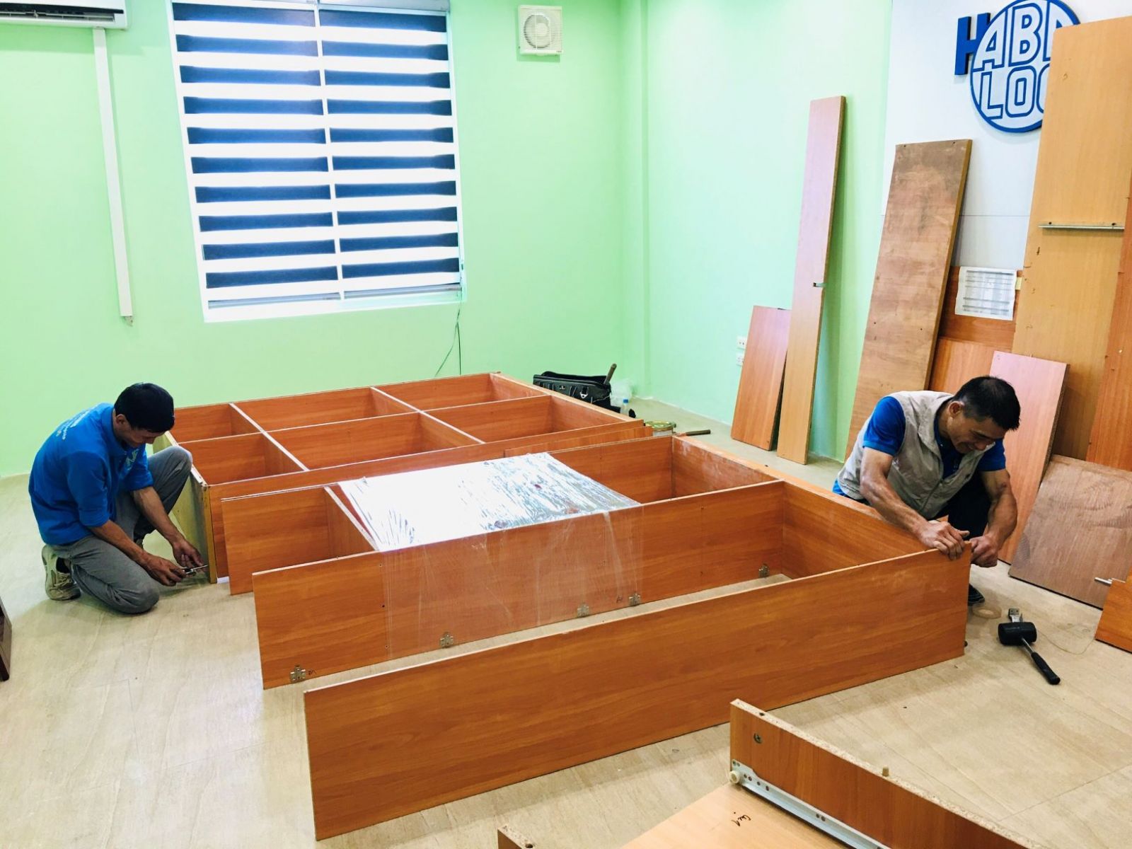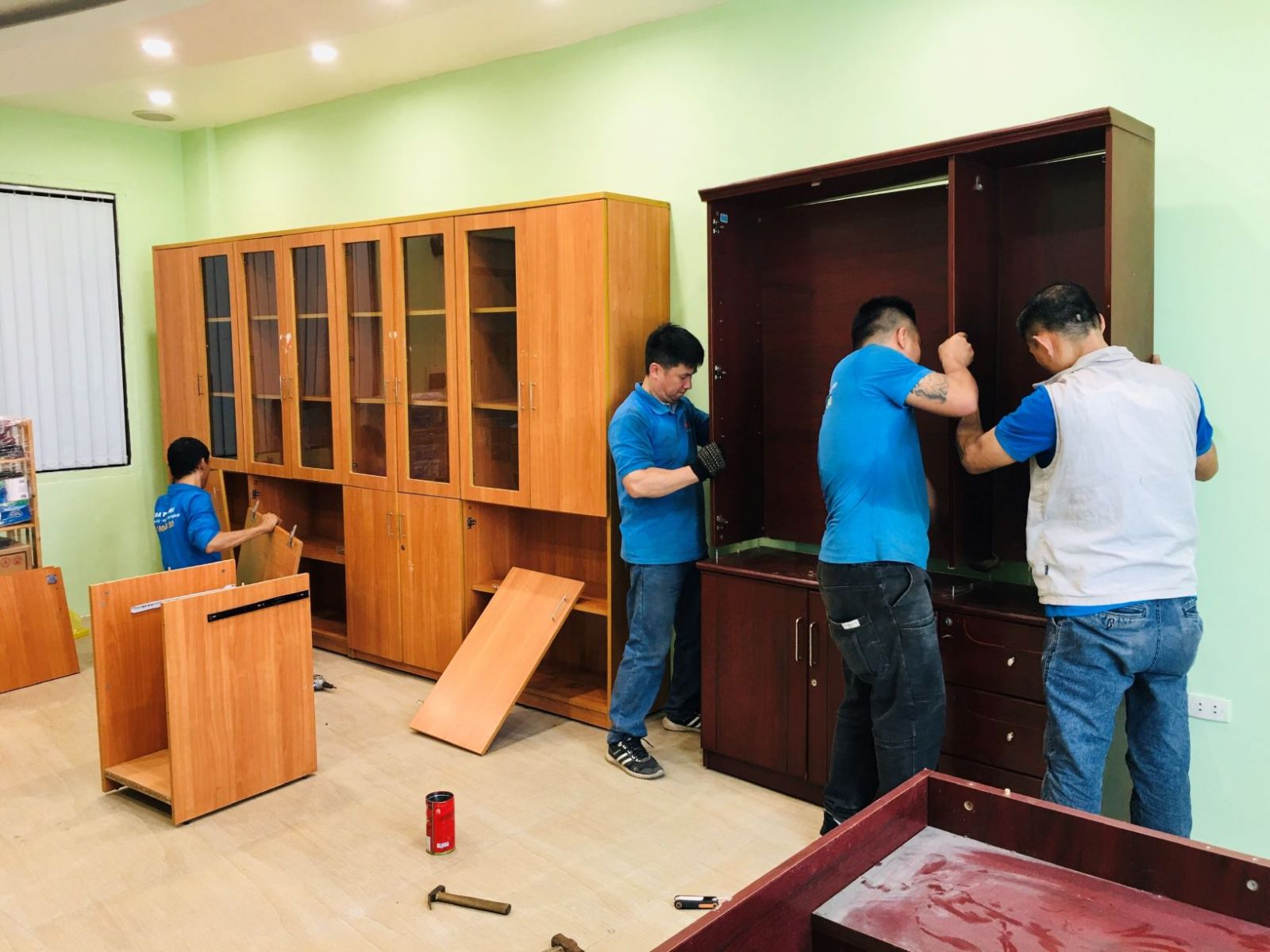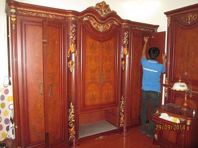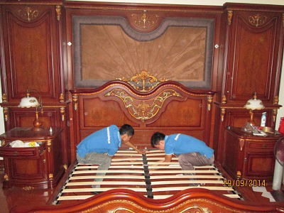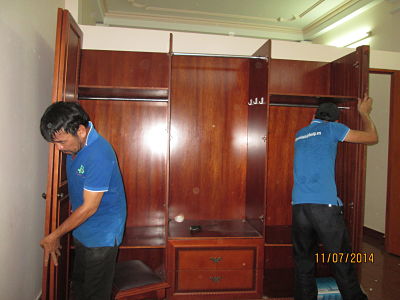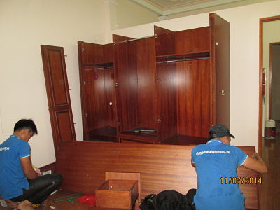 - Khi đồ đạc, thiết bị đã được vận chuyển lên từng phòng của từng tầng, thợ nội thất tiến hành lắp đặt đồ nội thất đã tháo dỡ. Thợ điện lạnh, điện tử tiến hành lắp đặt điều hòa, bình nóng lanh, máy giặt, tivi...
