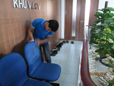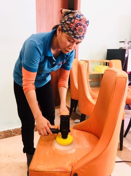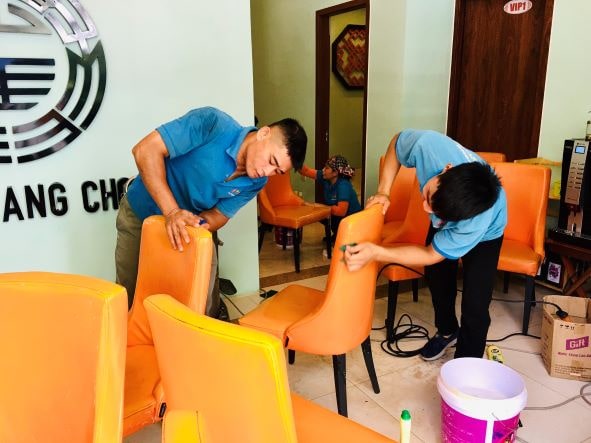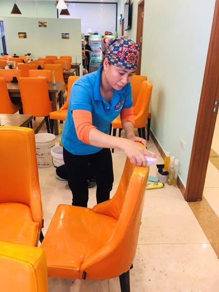 Vệ sinh ghế da tại nhà hàng Chen - Văn Cao